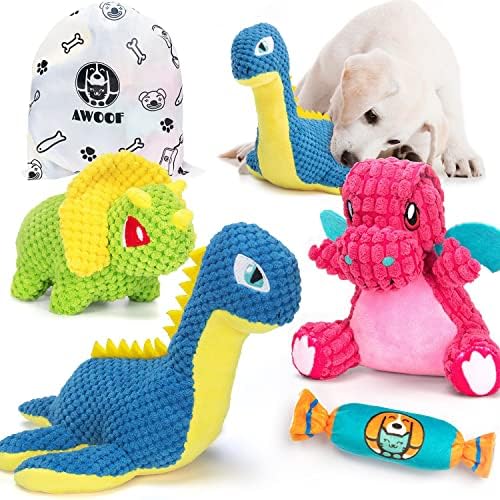 Awoof 4pcs Squeaky Plush Dog Toys Cute Stuffed Animal Puppy Toys With Squeakers Organize Bag Chewers For Small Medium Large Dogs Buy Online At Best Price In Uae Amazon Ae